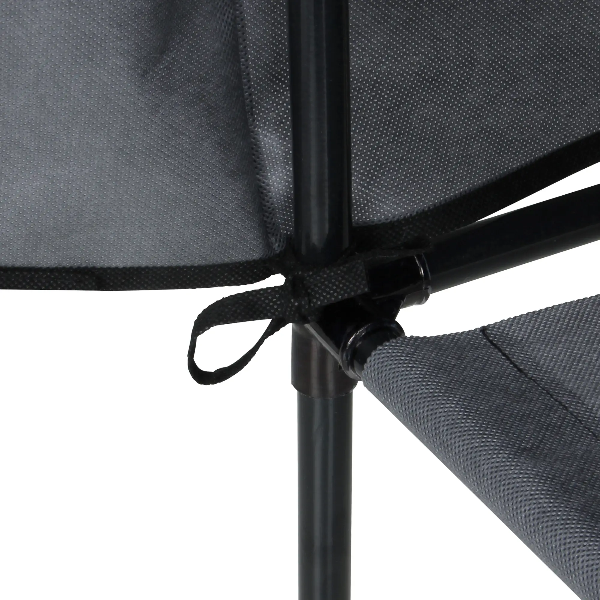 Der wasserabweisende Stoffüberzug wird mit Hilfe von Bändern am Rohrgestänge befestigt und liegt somit auch bei offenen Türen am Schrankkorpus an.