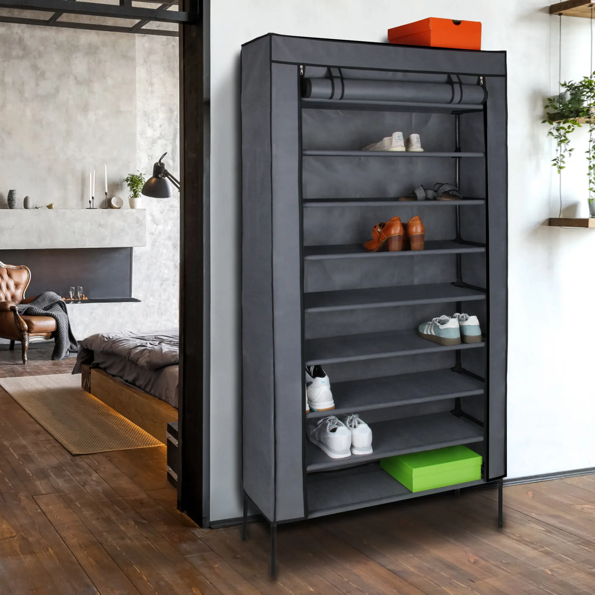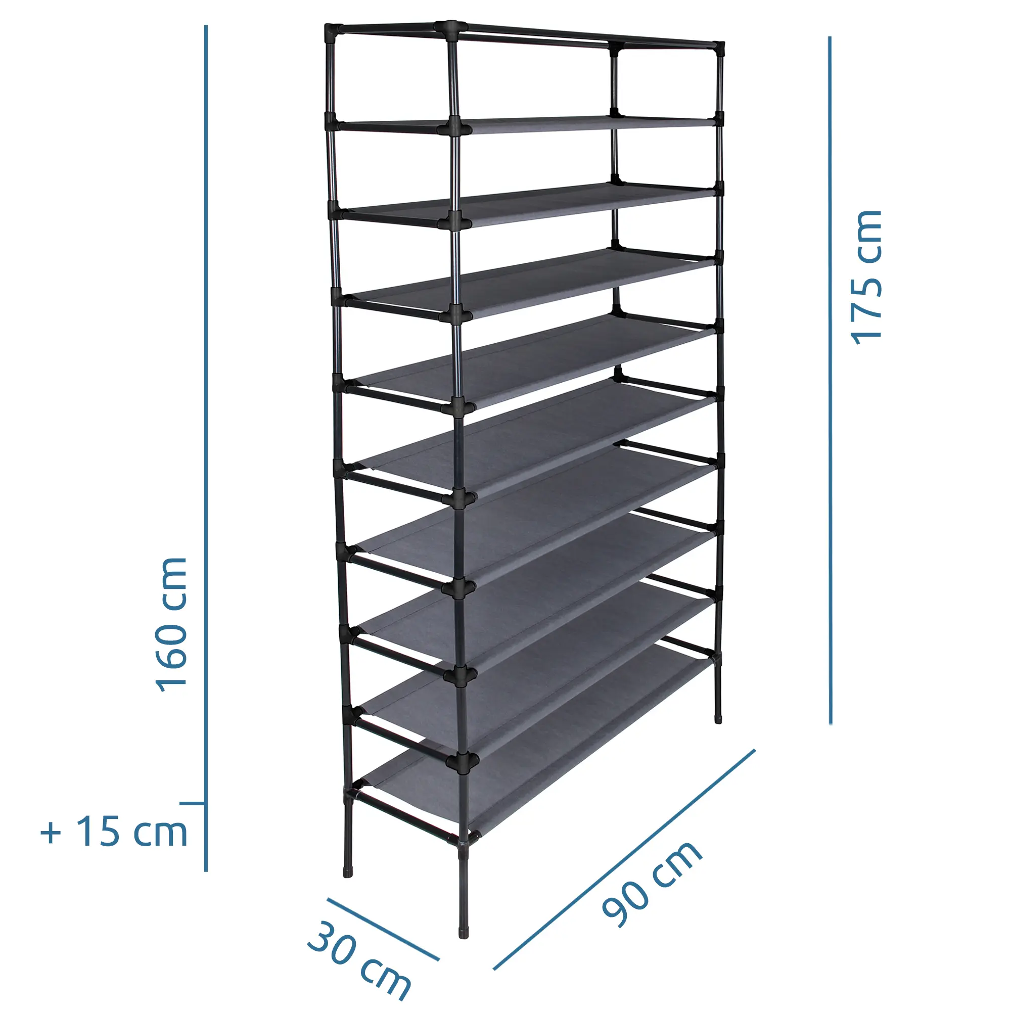 yourGEAR Schuhschrank Grado Stoffschrank 90x30x175 cm Schrank mit 9 Fächern für ca. 35 Paar Schuhe