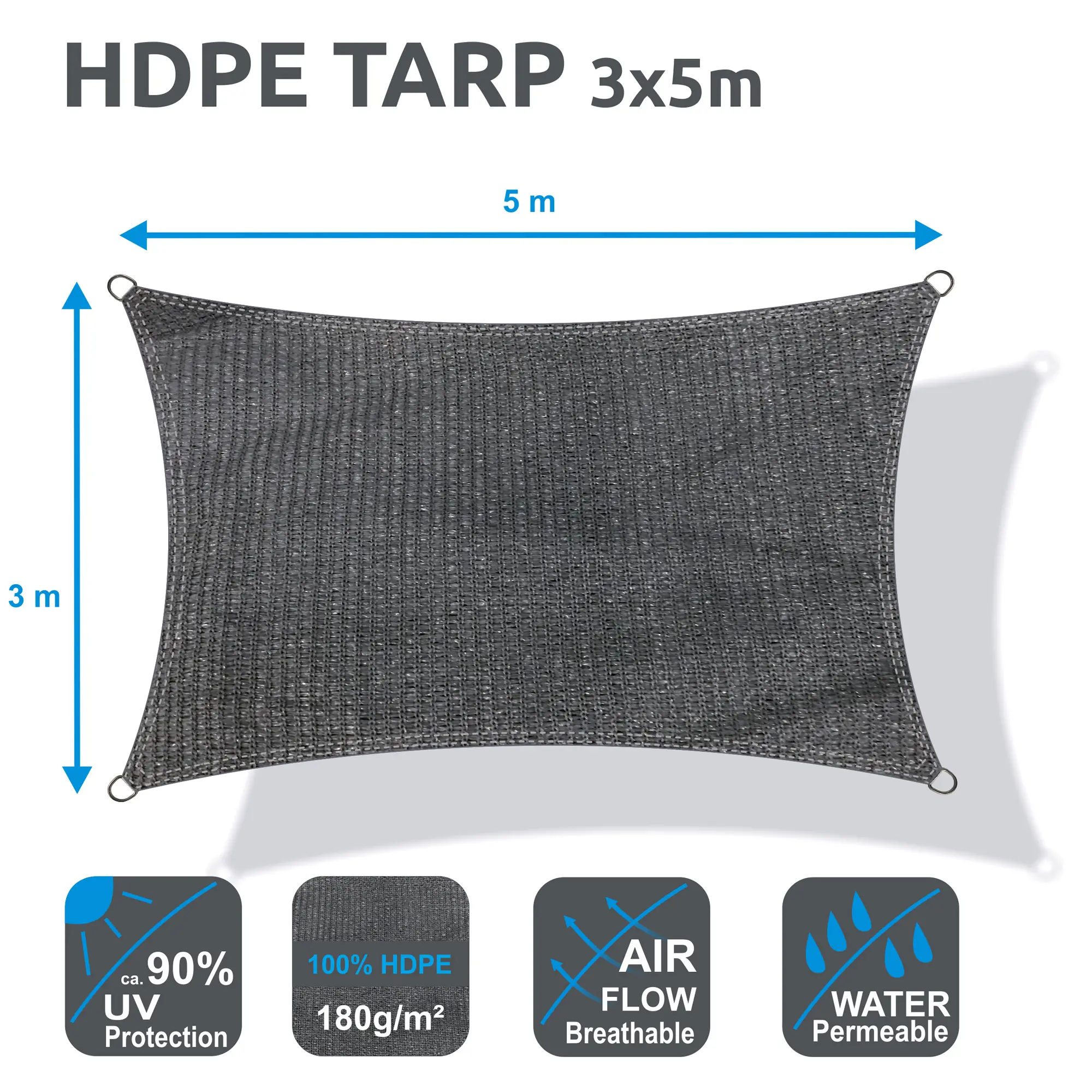 yourGEAR HDPE Tarp 3 x 5 Meter - Sonnensegel für Terrasse, Balkon, Camping, Garten, Festival und Events - luftiger Schattenspender mit 90% UV-Schutz